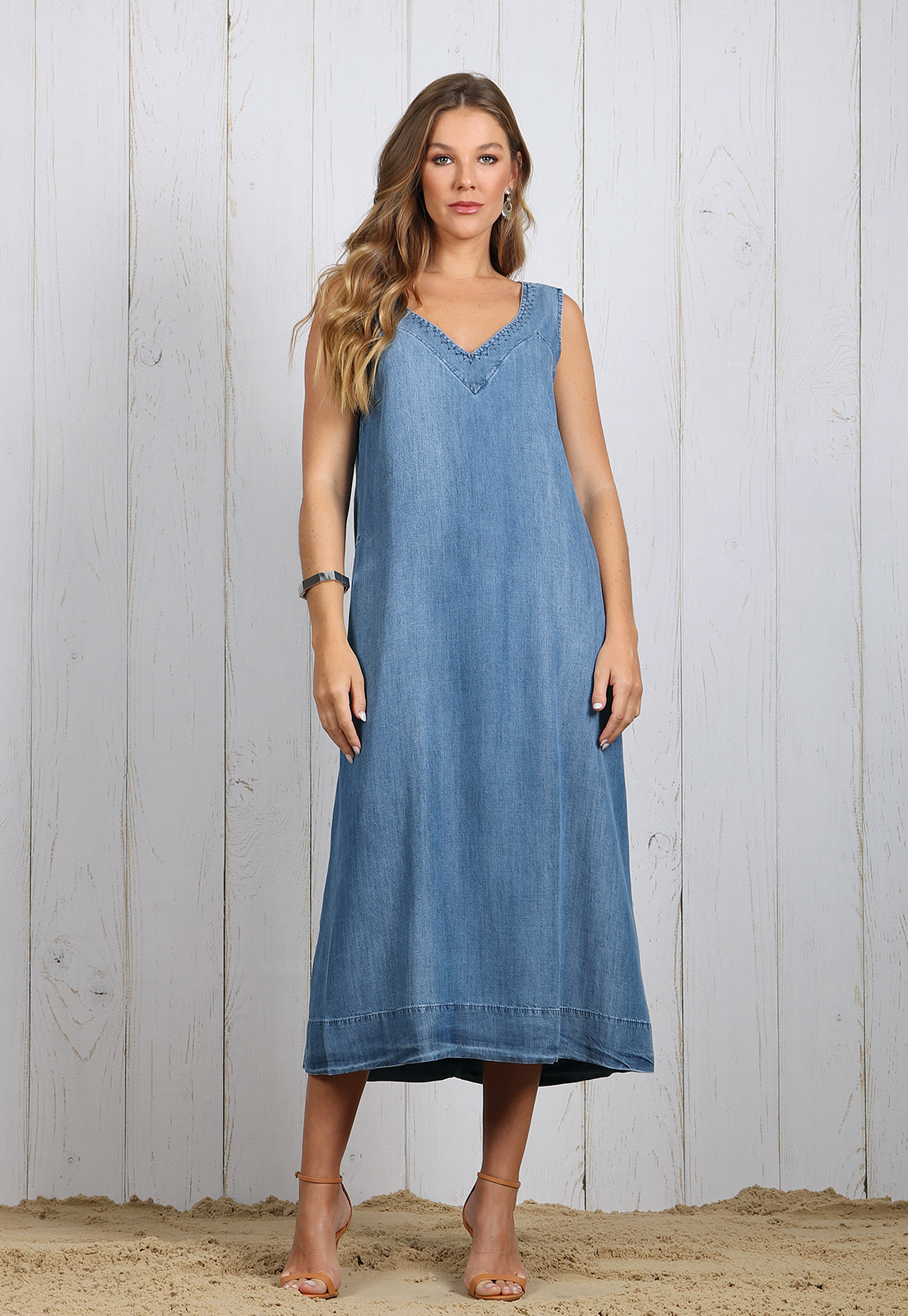 confeccionado em tecido nobre de modal, possui toque macio, comprimento midi, detalhe de bordado no decote.